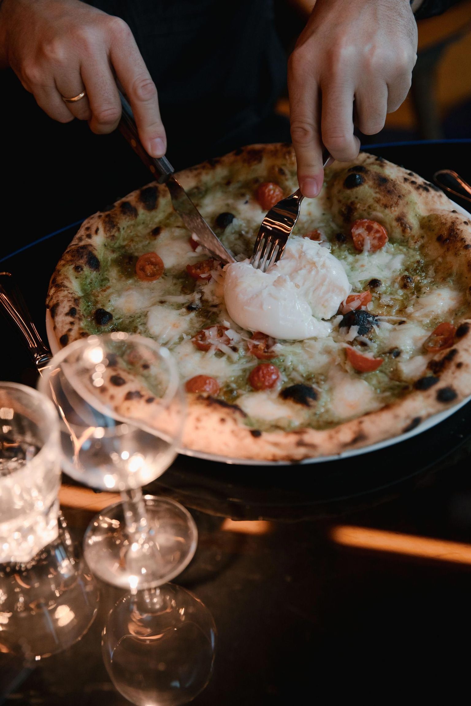 Tagsüber ein einladendes Nachbarschaftslokal, verwandelt sich das Cellini abends in einen atmosphärischen Treffpunkt für Genießer*innen, der auf das Teilen von Speisen setzt. Gäste sind eingeladen, Gerichte im „Family-Style“ zu genießen – sei es Vitello Tonnato oder ein knuspriges Stück Pizza, zubereitet nach neapolitanischer Tradition.