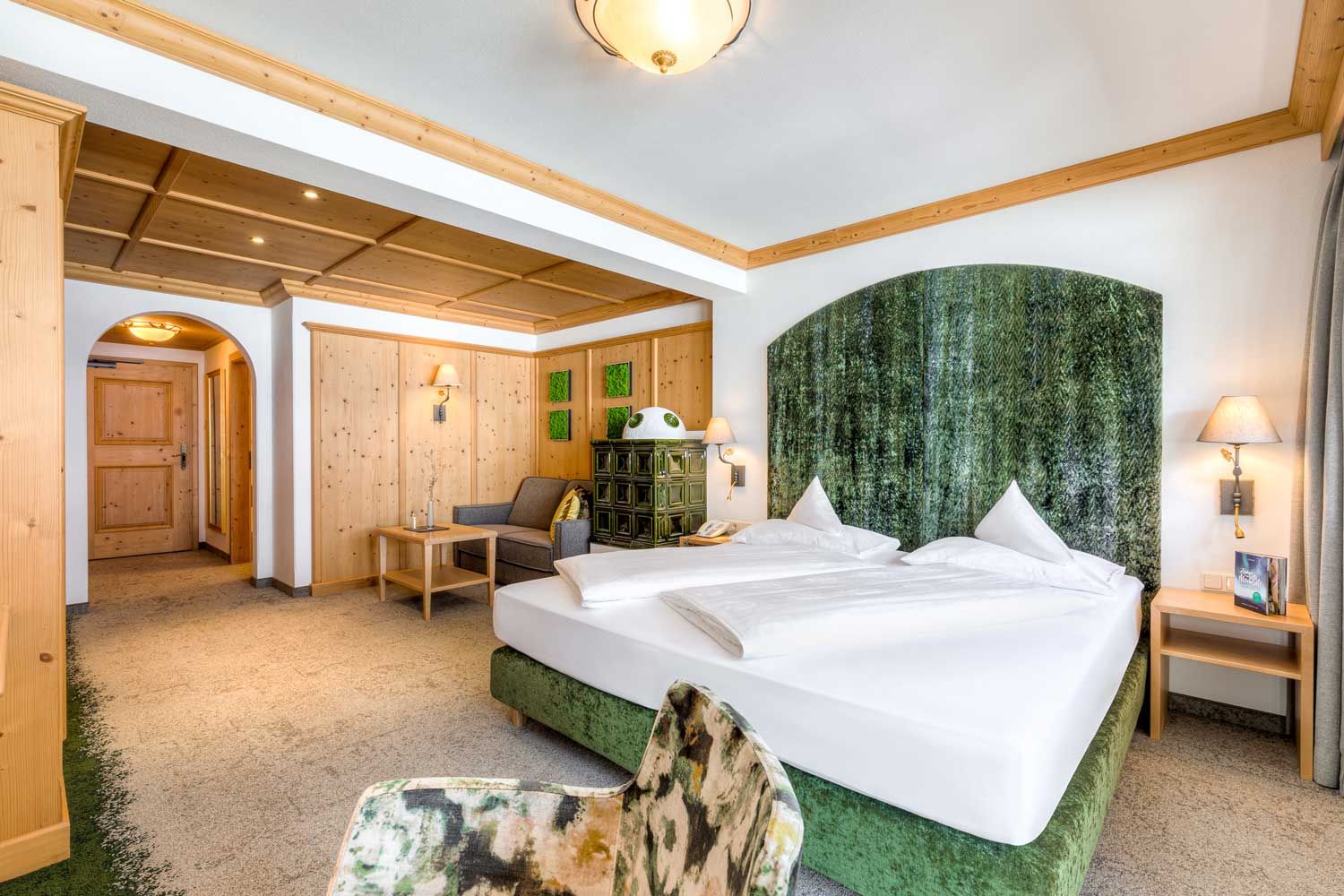 Die eleganten Zimmer und Suiten im Tiroler Landhausstil sind allesamt mit hochwertigen Materialien aus heimischem Zirben- und Eichenholz eingerichtet und versprühen eine charmante sowie komfortable Atmosphäre. Wunderbar entspannen lässt es sich im weitläufigen Vitalis SPA mit verschiedenen Saunen, Indoor-Pool und dem wunderschön angelegten „Alpengarten“ mit Panorama-Außen-Whirlpool. Zum Austoben für die ganze Familie ist die 160 Quadratmeter große Sporthalle wie geschaffen und im umfangreichen Fitnessbereich warten modernste Kraft- und Ausdauergeräte auf die Hotelgäste.