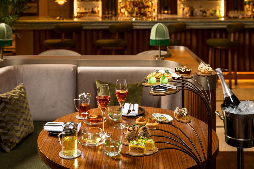 Begleitet wird der Afternoon Tea von einer erlesenen Tee-Selektion. Optional steht als Aperitif Champagner oder Sparkling Tea zur Wahl, geprägt von floralen und zitrischen Noten sowie feinen Tanninen des Darjeeling First Flush.