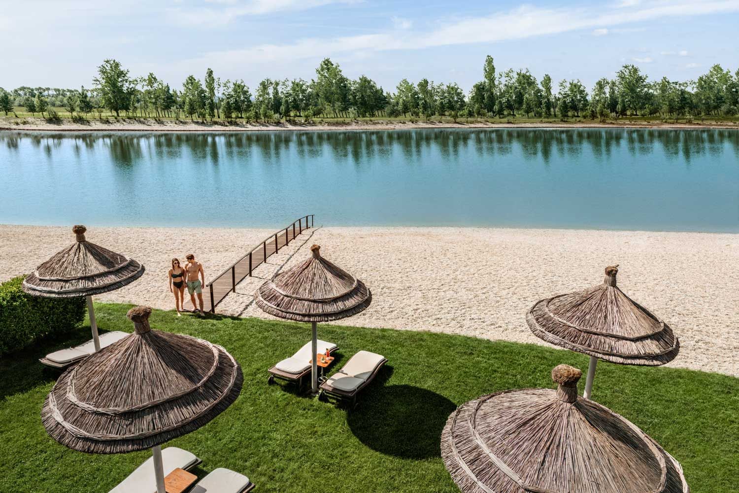 Der acht Hektar große, idyllische Badesee, kristallklares Wasser, viele Sonnenstunden und ein schier endlos weiter Horizont – das sind die Zutaten für ein Südsee-Feeling, wie es nur an einem Ort Österreichs zu finden ist. In der St. Martins Therme & Lodge entdecken Sie eine ganze Welt, die für viele unterschiedliche Wünsche Entspannung bietet: Die St. Martins „Summer Island“ ist mehr als eine große Liegewiese. Sie ist Treffpunkt für Natur- und Sonnenliebhaber*innen, Relax-Zone für erholungssuchende Fitness- und Wassersportler, Ausgangspunkt für abenteuerliche Entdeckungsreisen in die Pflanzen- und Tierwelt der Region, Sportmeile für Bewegungshungrige, die auch neue Sportarten, wie z.B. Stand Up-Paddling ausprobieren wollen, und – last but not least – Treffpunkt für Freund*innen musikalischer und kulinarischer Genüsse an der Beach Bar und in der „Chill Out Lounge“, die mit gemütlichen Sitzgelegenheiten zum Entspannen und Verweilen einlädt.