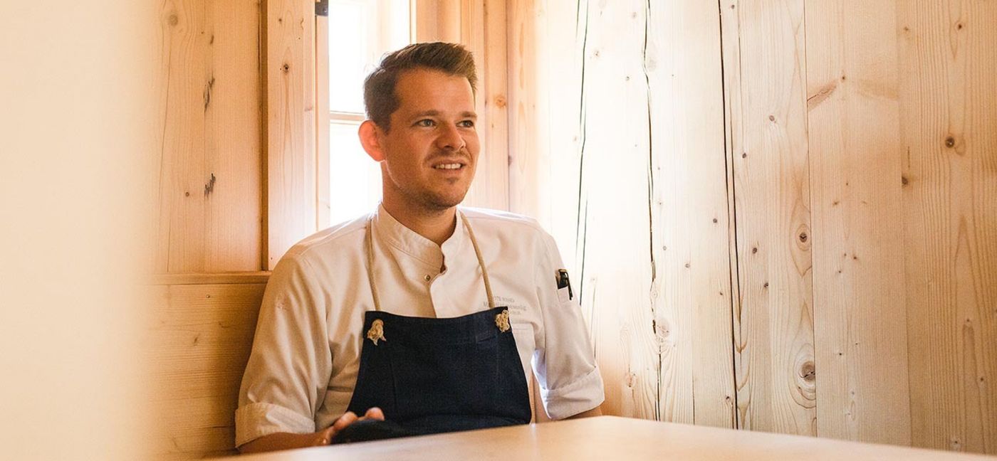 Von Jahr zu Jahr ist er noch besser geworden, weil er Schritt für Schritt die kulinarischen Schätze der Alpinen Küche entdeckt hat. Zwar beschränkt er sich nicht ausschließlich auf regionale Produkte, doch sie bieten das Rückgrat seiner saisonal wechselnden Menüs. Seine Frau Bekah hat die Ausildung zur Sommlière absolviert und begleitet die Menüs ihres Mannes mit außergewöhnlichen Weinen. Der Vier-Haubenkoch ist mittlerweile auch ganz oben angekommen: sowohl was die Lage des Arbeitsplatzes (1.510 Meter über dem Meer) als auch die berufliche Anerkennung betrifft.