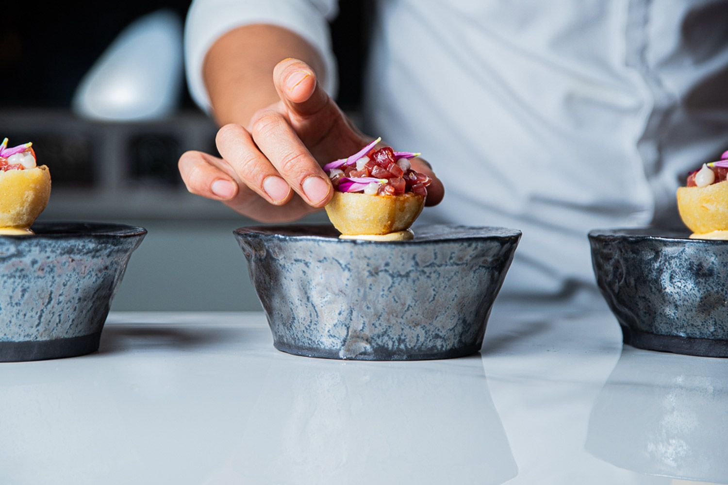 Von der Haut bis zu Knochen, Wurzel und Blatt findet im Ossa laut Miguel Giraldo alles Verwendung. „Das Konzept ist auch namensgebend. ‚Ossa‘ kommt aus dem Lateinischen und steht für Knochen“, erklärt er. Neben dem Zero-Waste-Anspruch arbeitet er zudem für das Tischgeschirr mit einer Keramikkünstlerin zusammen, deren Stücke auf seinen reduzierten Zugang abgestimmt sind.