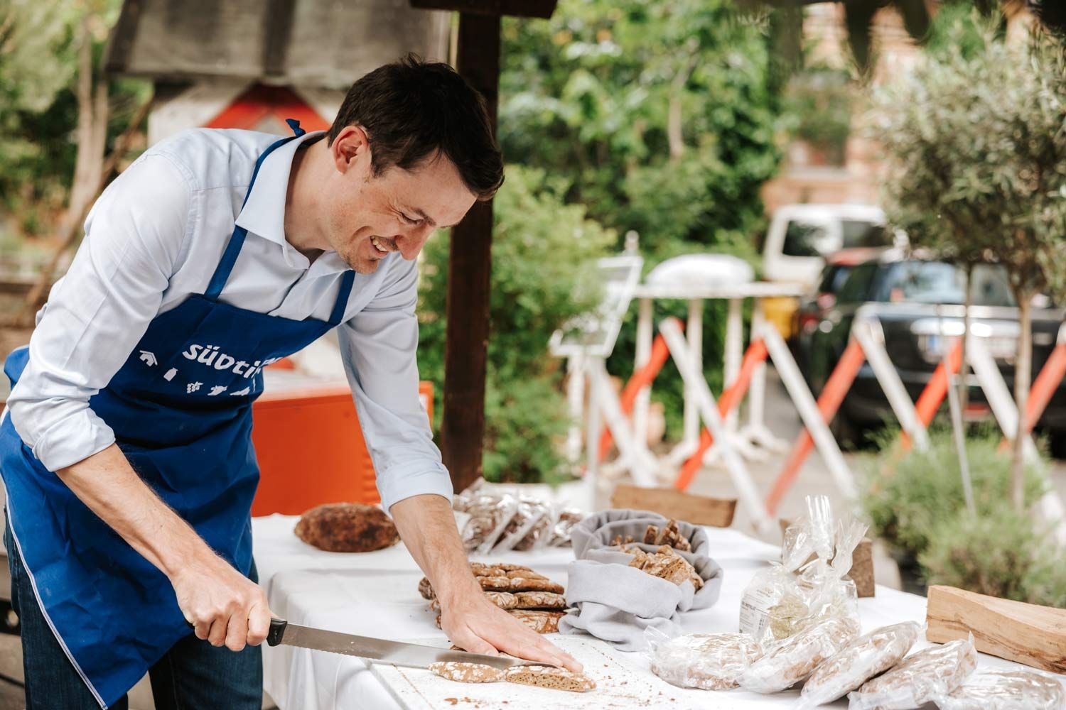 Zu den präsentierten Produkten zählte etwa das Fleisch des Villnösser Brillenschafs, einer seltenen, autochthonen Schafrasse, das von Oskar Messner unter der Marke „Furchetta“ vermarktet wird. Ebenfalls vor Ort war Martin Pircher, der seinen charakteristischen Ahrntaler Graukäse vorstellte – ein fettfreier, kräftig schmeckender Käse mit unregelmäßiger Form, der noch in Handarbeit hergestellt wird. Pius Schuster, Bäcker in vierter Generation, präsentierte das Vinschger Urpaarl, ein traditionelles Sauerteigbrot aus dem Obervinschgau. Eine eher ungewöhnliche Spezialität stellten Frank Weber und Hartmann Varesco mit ihrem koffeinfreien Lupinenkaffee aus dem Südtiroler Dorf Altrei vor – ein Produkt, das an eine fast vergessene Genusskultur anknüpft.