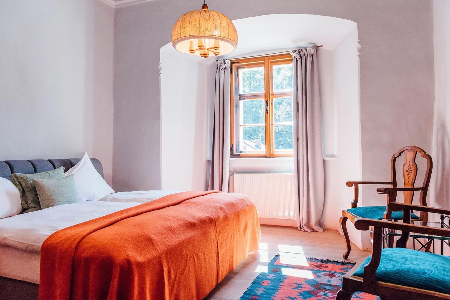 Im Jahr 1020 erbaut, hätten die alten Gemäuer des ehemaligen Benediktinerinnenklosters sicherlich viele Geschichten zu erzählen, etwa von den Bränden 1327 und 1632 und den Jesuiten, die das Gebäude im 16. Jahrhundert wiedererrichtet haben. Das Kloster ist heute auch Heimat der internationalen Akademie für Quantenphysik und der Sommerakademie für Bildende Kunst. Nun kann das Refugium ganz privat gebucht werden. Wer zu zweit reist, wählt ein Doppelzimmer und lässt sich in den naheliegenden Restaurants verwöhnen. Für Geschäftliches steht ein Seminarraum (40 m²) zur Verfügung.