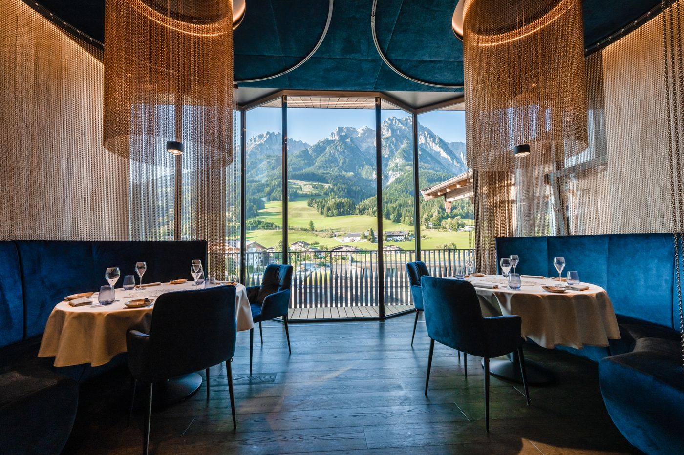 Nahezu geräuschlos öffnet sich nicht nur der Vorhang, der die Sitznischen im Gourmetrestaurant „dahoam“ des Hotels Riederalm umschließt, er gibt auch dem Küchenteam um Andreas Herbst eine perfekte Bühne für ihre Regionalküche frei: Nahezu sämtliche Produkte stammen aus der Region oder werden großteils mühevoll selber hergestellt. Auf der „Reise durch Leogang“, wie die Menüs heißen, wird dem Gast eindrücklich die Produktvielfalt der Region vor Augen geführt. Keineswegs aufgesetzt oder überanstrengt, sondern mit klarem Fokus auf die Haupt- oder Nebendarsteller auf den Tellern. Verschiedene Leoganger Tomaten, flambierter Saibling in Holunderblüten-Miso, Tascherl vom Haselnuss-Kazerl oder auf den Punkt sanft gebratenes Leoganger Kalb stellen nur einige der vielen Highlights dar. Tolle Weinbegleitung!