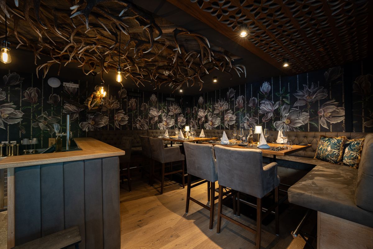 Ein Rothirsch, dessen Geweih 12 Enden hat, wird als 12-Ender bezeichnet. Im gleichnamigen À-la-carte-Restaurant im Das Kohlmayr bezieht sich die Zahl auf die Sitzplätze: Gerade einmal 12 Gäste finden pro Abend im exklusiv-gemütlichen Ambiente Platz. Man sitzt bequem auf gepolsterten Sesseln, die Wand ist blumig tapeziert, von der Decke hängen Geweihe. Und dann kommt Küchenchef Patrick Pass mit seinen zwei Menüs ins Spiel, die die Klaviatur von gegrilltem Knollensellerie über Lammrücken im Tramezzini-Mantel bis zu Bauerntopfen wunderbar spielen.