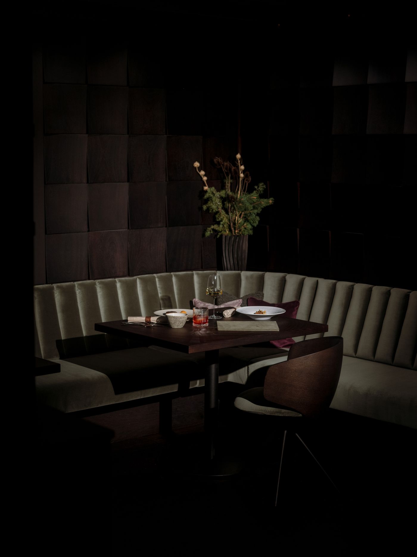 Vom Walde inspiriert sei das neue Restaurant, liest man auf der Website, „Taste the Forest“, so lautet das Credo. Aber dann Kaisergranat, Kaviar und Avocados? Nun, ganz so streng sieht Chef de Cuisine Michael Helfrich in seiner offenen Küche die Sache mit dem Wald nun wohl nicht. Es geht wohl eher um Akzente, Inspiration und Storytelling. Und das funktioniert prächtig! Armer Ritter aus Brioche, Wagyu und Kräuterseitlingen ist ein toller Auftakt. Kaisergranat mit Gurke, Kaviar und Buttermilch funktioniert ebenso gut wie Wildfangzander mit Räucheraal. Zum Reh mit Pfifferlingconsommé und Moosbeeren passt ein reifer Château Pontet-Canet. Auch zum Dessert – Original-Beans-Schokolade als Schaum und Mousse mit Sauerrahmsorbet, Erdbeeren und Fichtensprossen – serviert Maître Johann den passenden Wein.