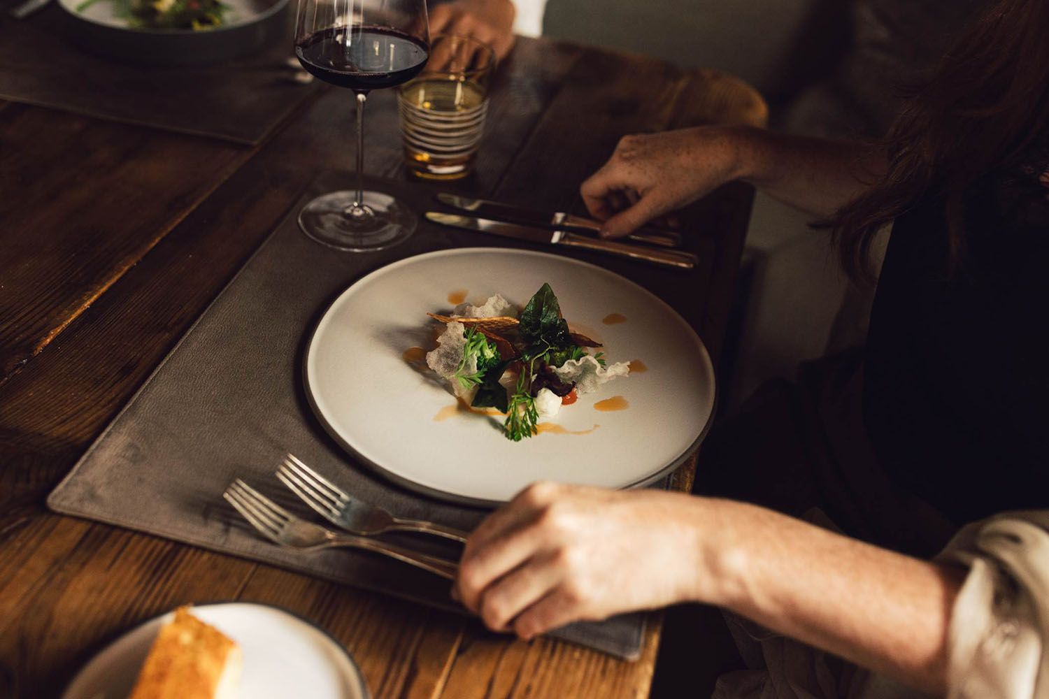 Die historische Fuggerstube im Alpbacher Böglerhof ist der perfekte Ort für Genießer und beeindruckende Geschmacksmomente unter der Regie von Hansi Treichl. Der Einstieg ins Menü ist ein echtes Statement: Kraftvolles Wagyu-Tatar trifft auf rauchigen Bauchspeck, dazu aromatisches Senfeis und feines Wurzelgemüse. Unser persönliches Highlight ist der Kartoffelknödel, gefüllt mit würzigem Tomatenragout, auf leichtem Tomatenschaum. Das berühmte i-Tüpfelchen: der am Tisch gehobelte Berggranat aus der Bergkäserei Zillertal. Soulfood vom Feinsten. Der Hauptgang überzeugt mit einem zart gegarten Zanderfilet, dazu Karfiol – einmal als geräucherte Creme, einmal knusprig gebacken. Besonders erwähnenswert: die alkoholfreien Feral-Drinks aus Südtirol.