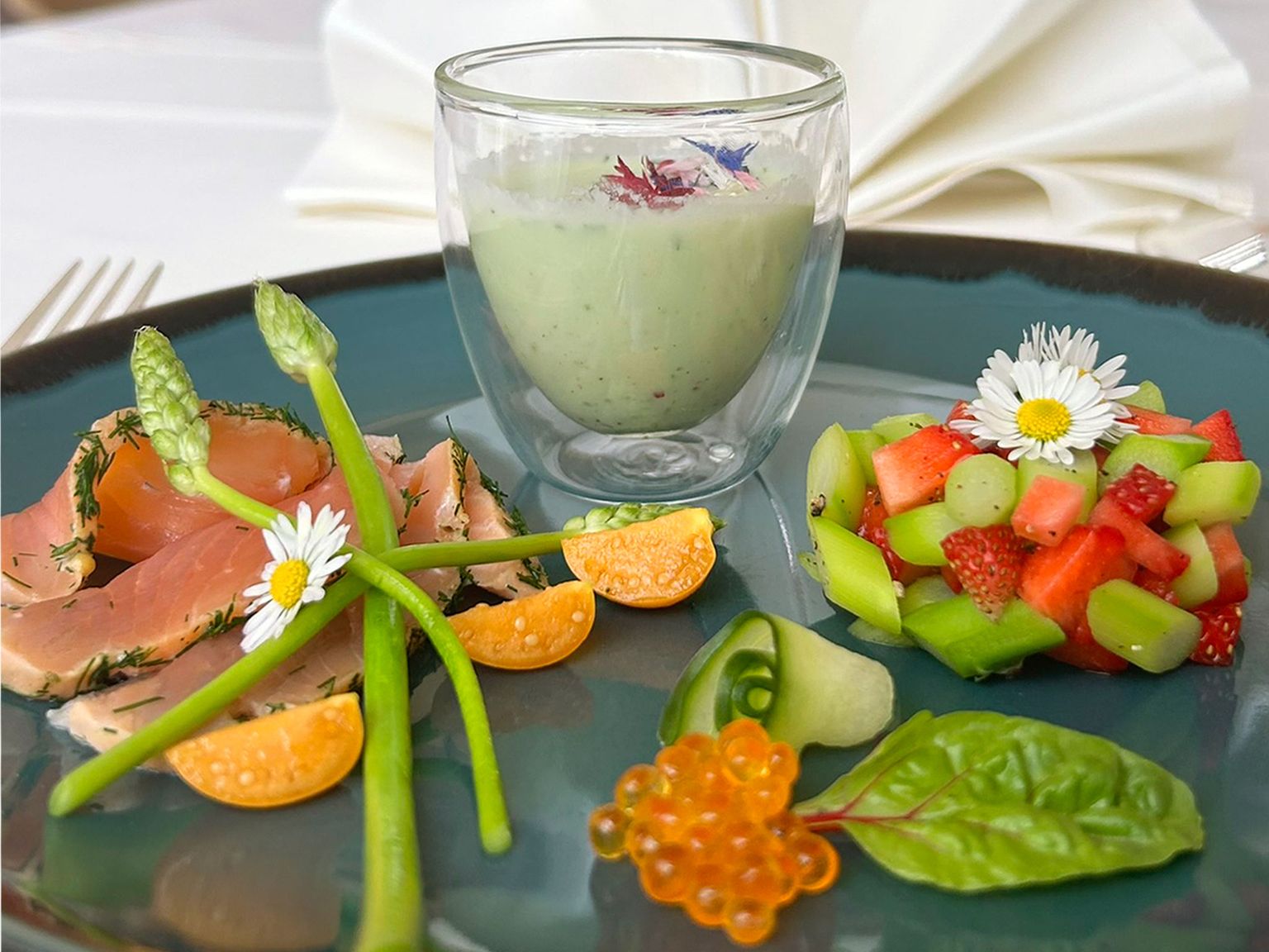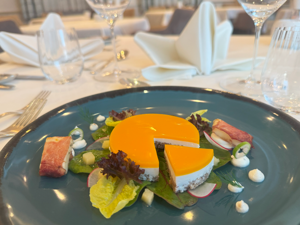 Ein Besuch im kleinen À-la-carte-Restaurant „Bucklige Welt“ im großen Gesundheitsresort Königsberg will wegen der auf wenige Tage pro Monat beschränkten Öffnungszeiten gut geplant sein. Küchenchef Markus Oelgarte startet mit einer fein austarierten Ziegenfrischkäse-Crème-brulée und setzt mit einer herrlich schaumigen, ziemlich scharfen Hokkaido-Kürbissuppe fort. Gute Idee vom freundlich-versierten Service, mit Lamm und Milchkalb (köstliche Kräuterkruste!) aus zwei Hauptgerichten eines zu machen. Das Dessertangebot wurde erfreulicherweise ausgebaut und zum Beispiel um eine wunderschön angerichtete Schokoladenlasagne und eine abwechslungsreiche Zwetschkenvariation ergänzt.