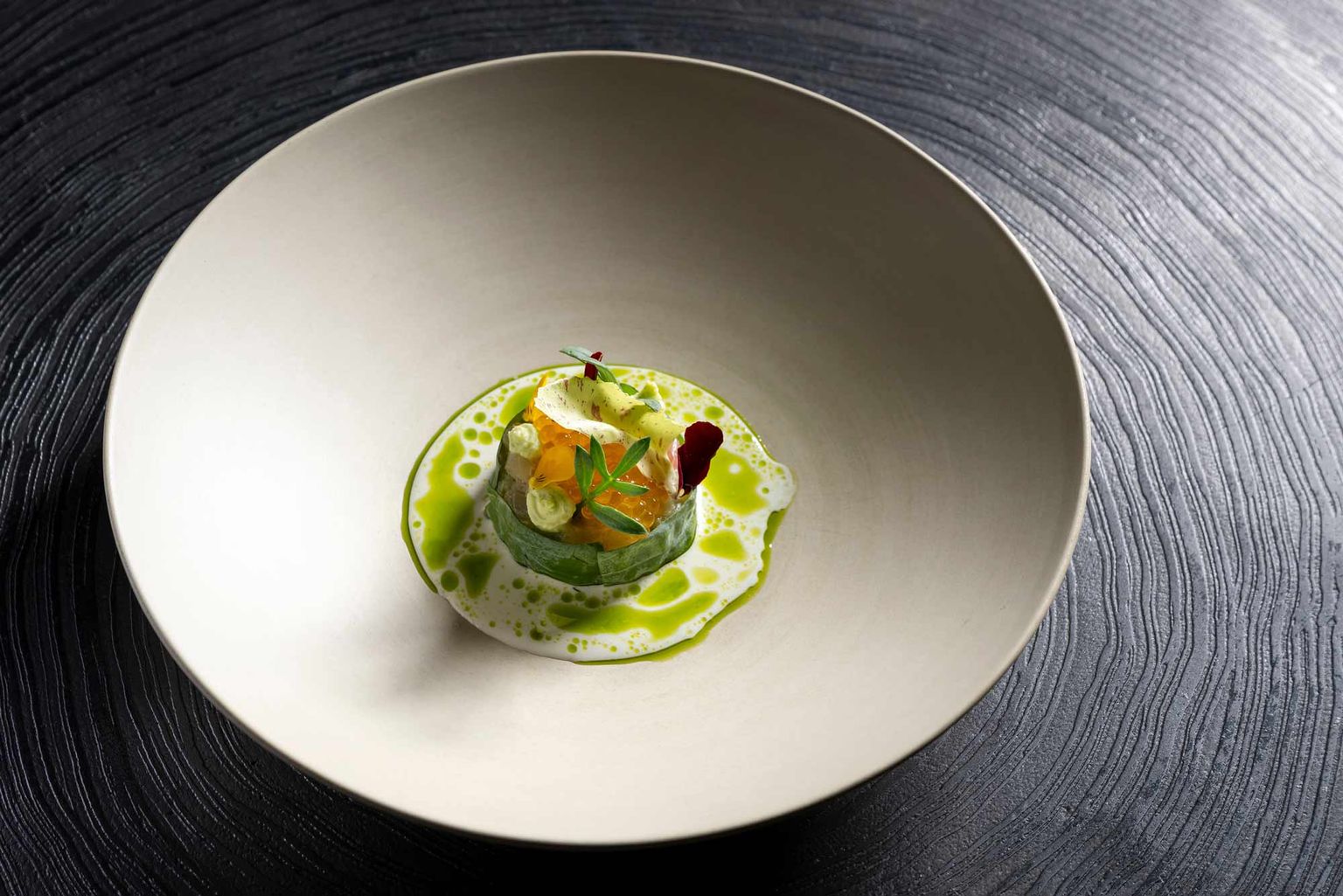 Das Restaurant heißt „Alps & Ocean“ und wird seinem Namen mehr als gerecht. Es gehört zum Sonnenhof in Grän, den wir drüben, bei den Hotels, als „Gourmethotel des Jahres“ ausgezeichnet haben. Herzlichen Glückwunsch an dieser Stelle! Wie gesagt, der Name ist Programm. Das Menü startet mit einem Erdäpfelpüree und Kaviar, serviert in einem Ei. Dann dreimal Fisch, einer besser als der andere. Es gibt Wolfsbarsch, Schwertfisch und Steinbutt. Der Barsch kommt als Tatar, begleitet von Hechtkaviar und (herrlich an Austern erinnernde) Austernblättern. Für den nächsten Gang wird Schwertfisch über einem Grill mit Binchōtan (oder Binchōzumi) gegrillt. Jene japanische Kohle, die aus asiatischer Steinlindeneiche gekohlt wird. Der Schwertfisch profitiert vom filigranen Aroma. Auch der Rest vom Fest überzeugt: Bries vom Tiroler Kalb mit Hausbrotcreme, zum Schluss ein Ducasse-Klassiker: Baba au Rhum. Mit verschiedenen Rums zur Auswahl. Umwerfend, das alles!