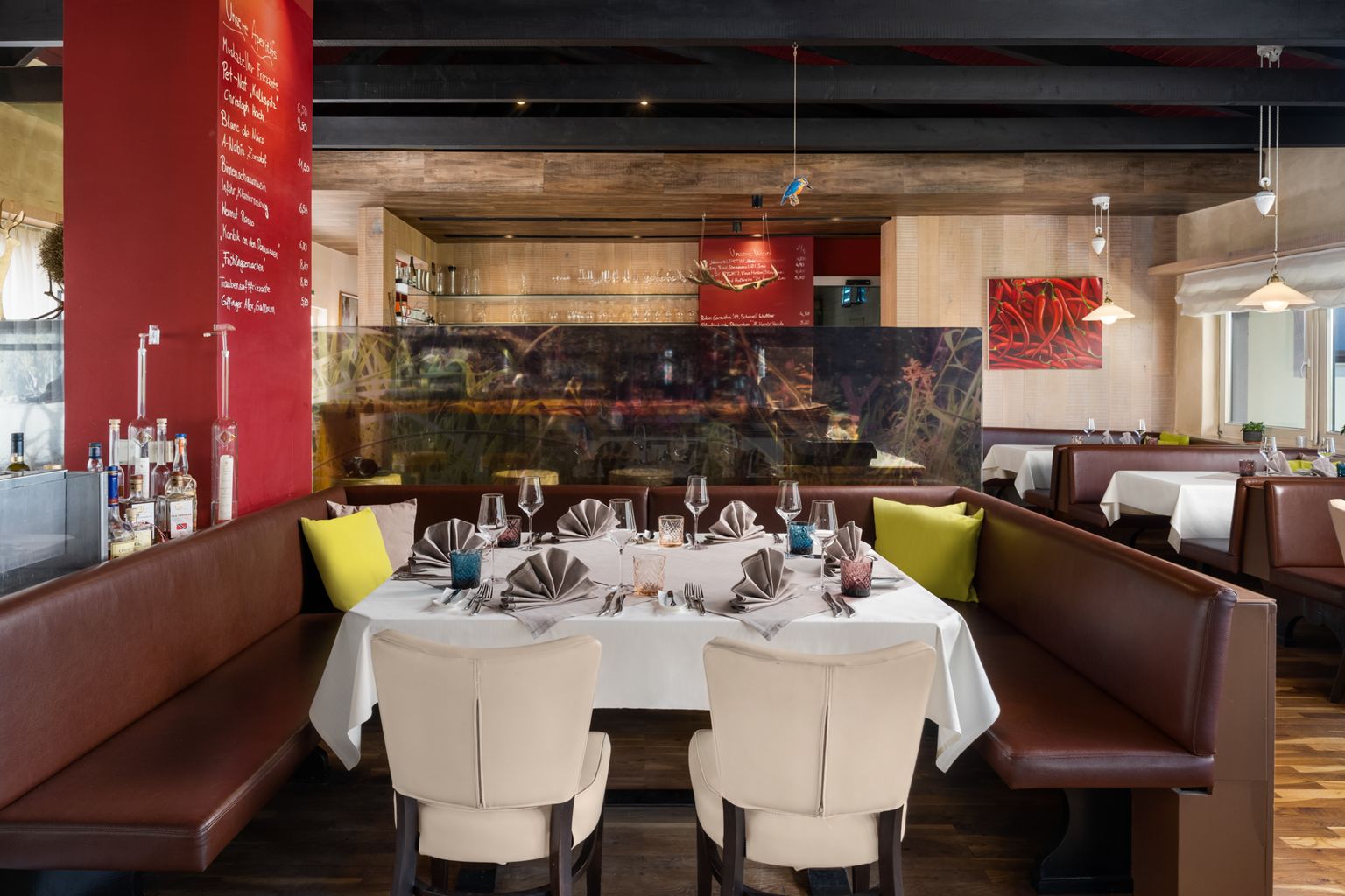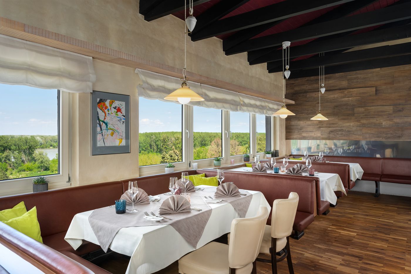 Nicht nur der tolle Ausblick auf die romantisch-wilden Donau-Auen belohnen den Gast für die Anfahrt, auch die Gastfreundschaft des sympathischen Serviceteams sorgt für Vergnügen. Bereits die Vorspeisenvariation macht Lust auf noch mehr: Ein genussvolles Arrangement bietet einen tollen Überblick über die vielfältige Küchenleistung. Besonders überzeugen kann das absolut hervorragende Carpaccio vom Rinderfilet, welches von der Grundqualität der Hauptzutat lebt. Der gebratene Seesaibling auf Mangold wird von aromatischem Risotto mit Amalfizitrone begleitet, die abschließende Mille-feuille von der regionalen Haslauer Bioerdbeere. In Sachen Wein ist man gut beraten, sich in die sachkundigen Hände des Sommeliers zu begeben, der die eine oder andere Überraschung über die nahe slowakische Grenze hinaus in petto hat. Kleiner Kritikpunkt: Das Interieur würde sich über behutsame Renovierungsarbeiten freuen.