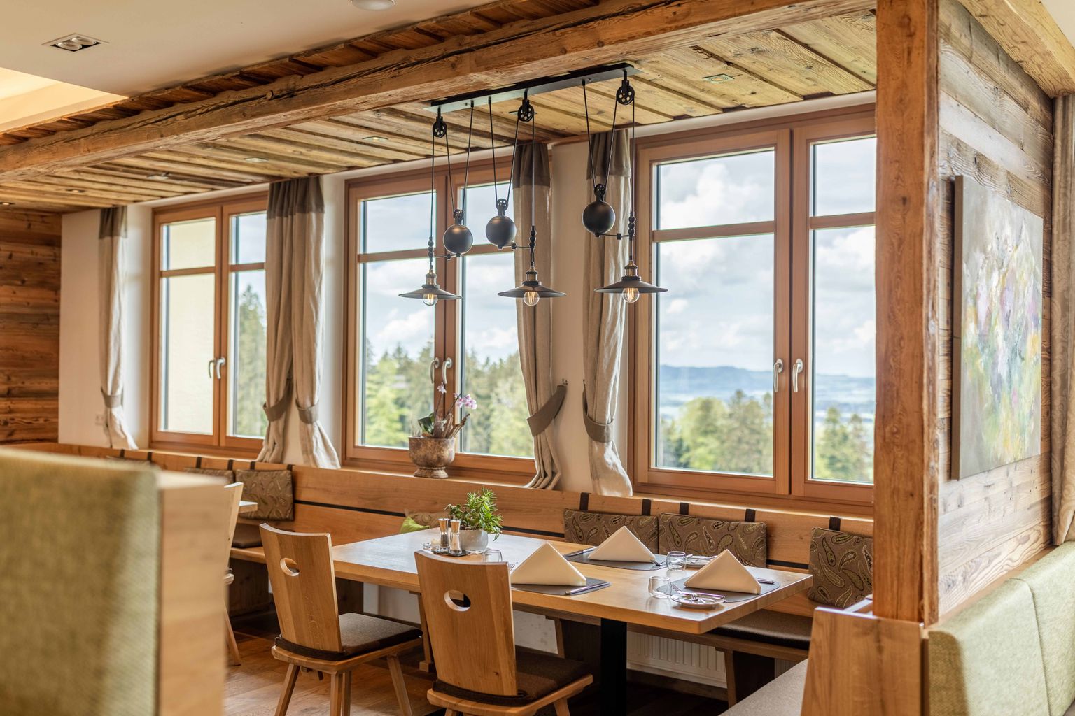 Nur acht Kilometer von der Mozartstadt entfernt, lädt das idyllische Landhotel zur Absage an Hektik und Stress ein. Margit und Michael Oberreiter rufen zum „feinen Speisen“ auf: mit österreichischer Küche, die Ausflüge ins Moderne unternimmt, ergänzt von ausgezeichneten Weinen und einem hübschen Fernblick. Das viergängige „Michaels Menü“ startet mit confierter Lachsforelle, geht über zu einer Brennnesselschaumsuppe, nimmt als Hauptgang Lamm mit und endet mit einem ungewöhnlichen Dessert: Kernölsulze mit Erdbeeren und Kürbiskern-Pistazien-Eis.