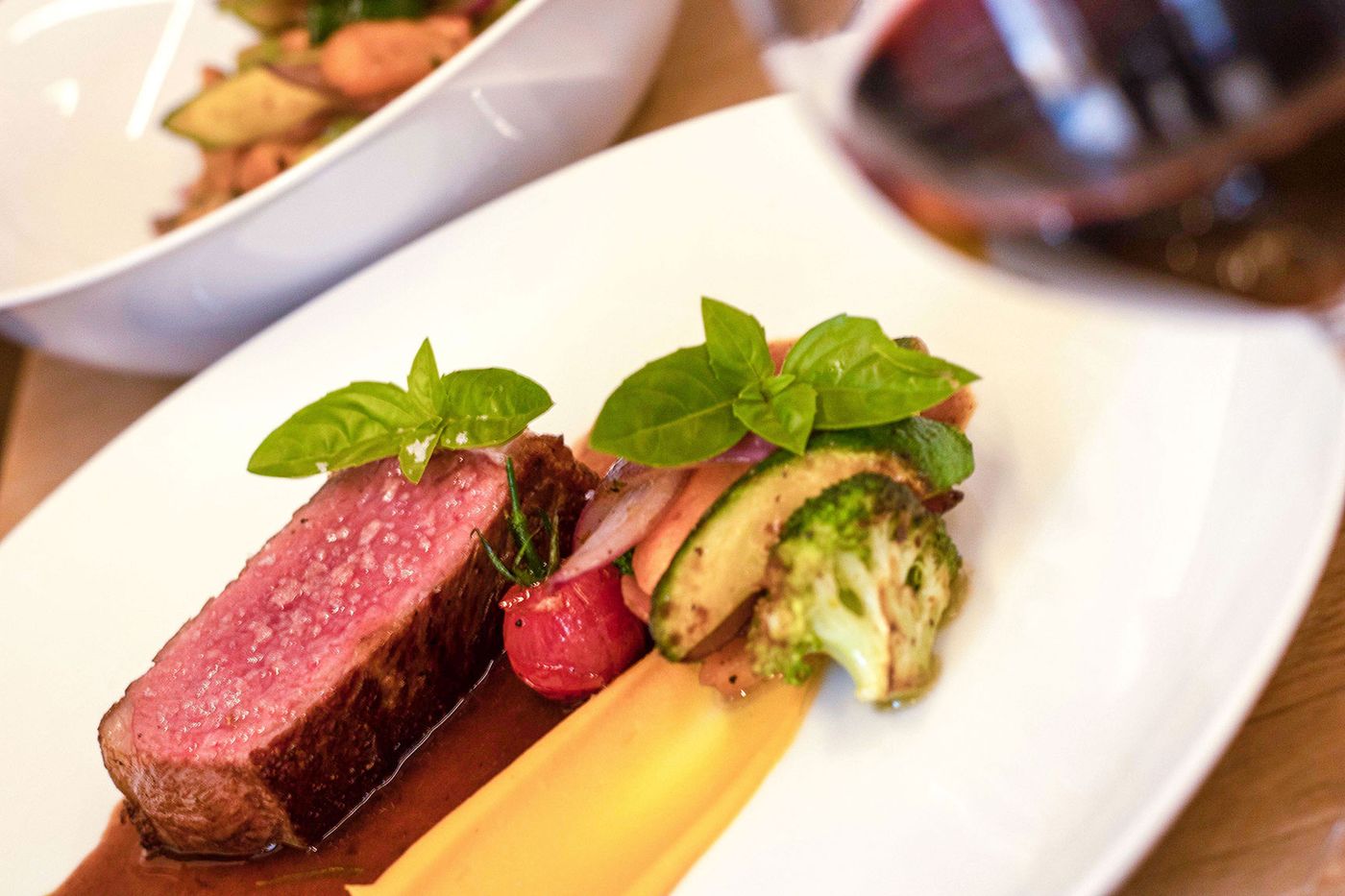Wie sich das Nevo entwickelt hat, ist erfreulich: Im gemütlichen, modern-reduzierten Gastraum kommt zunächst zweierlei hausgebackenes Brot mit Tomatenbutter zu Tisch, gefolgt von Wassermelonen-Carpaccio, einer cremigen Fetacreme und eingelegten Salzzitronen. Überhaupt spielen im Haus Eingelegtes und Fermentiertes eine größere Rolle. Das gebratene Entrecote ist perfekt rosa, die hausgemachten Agnolotti ergeben eine schöne Beilage, genauso wie der aromatische Jus. Auch beim Pfifferlingsragout fehlt es an nichts – gemeinsam mit dem getrüffelten Erdäpfelpüree ergibt sich eine stimmige Kombination. Wir fühlen uns wohl, auch ob des freundlichen Personals. Weiter so.
