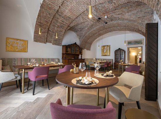 Ganzjährig in knapp einer Stunde von Eichelwang erreichbar, liegt der Pfandlhof malerisch im Kaisertal. Unterwegs stets im Blick: die Festung Kufstein, die Innberge und der Wilde Kaiser. Drinnen dominiert klassische Tiroler Wirtshausküche in verlässlich guter Ausführung. Die klare Rindssuppe mit Speckknödel ist ein Pflichtprogramm, das Gulasch überzeugt mit Tiefe und Textur. Stehen Wildgerichte aus eigener Jagd auf der Karte, heißt es zugreifen: regional, sauber verarbeitet und geschmacklich auf dem Punkt.