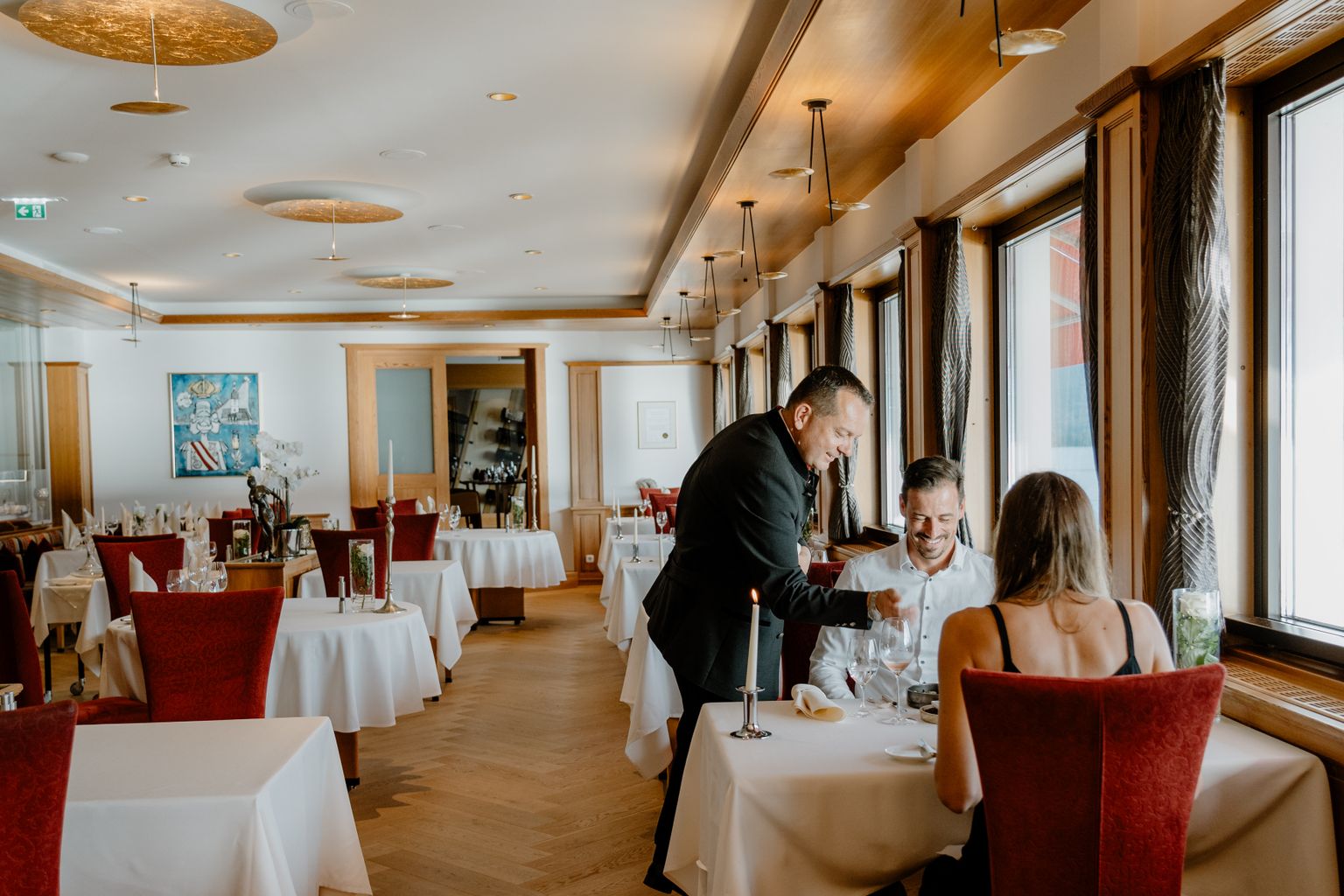Die Melange aus Tradition und Vision macht das Rössl zum begehrten Platz im Salzkammergut. Die Lage am See ist einzigartig, die Bildergalerie des ehemaligen Restaurantleiters Thomas Selinger verleiht dem Lokal eine tolle Atmosphäre, zu der auch Serviceleiter Zoran Baric mit seiner Weinexpertise beiträgt. Koch Hermann Poll liefert mit seinen Menüs die Steilvorlage. Pfiffig ist das warme Amuse: gebackener Wolfsbarsch mit getrüffeltem Ei – eine Steckerlfisch-Interpretation. Der erste Gang – Trauner Flusskrebse – wird schön inszeniert, leider kratzt die Olivenerde am Gaumen. Besser sind da die Riesengarnelen mit Karottencreme und Kalbsbries. Poll versteht es, mit Fischen zu arbeiten, der Gang des Abends ist aber Tauernlamm. Klassisch Rücken und Bauch, der von aromatischer Wucht getragen ist. Die Petits Fours sind top, wer mehr probieren möchte: in die Rösslerei flanieren!