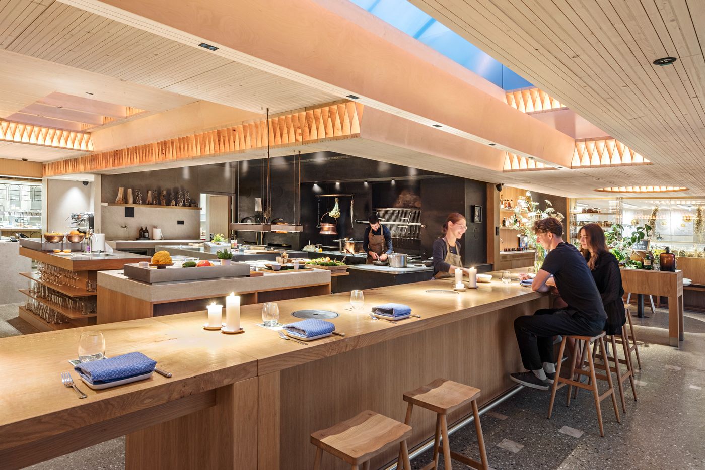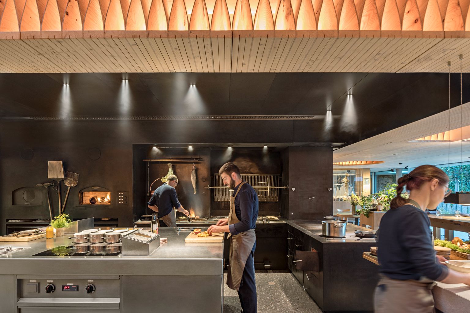 Ganz grundsätzlich: Am Pogusch sind Schankkuchl und Wirtshaus zwei grundverschiedene Dinge. Und das eine wird vom anderen kristallklar getrennt. Das bedeutet: Wenn man einen Platz am langen Tisch in der Nähe der Feuerstellen hat, kann man nichts von der Wirtshauskarte bestellen. Das ist umgekehrt genauso – und das ist gut so. Denn was in der Schankkuchl geboten wird, ist absolut einzigartig. Es gibt Gerichte mit originellen Namen und ein so legeres wie aufmerksames Serviceteam. Und Köchinnen und Köche, die – nachdem man ihnen von der Schank aus über die Schulter schauen konnte – jedes Gericht mit Hingabe erklären. Los geht es mit dem „Zapfenstreich“ – Pogusch-Erdäpfel mit Senfgurken und Kapern – und einem direkt vor unserer Nase gegarten „Teufelsroller“ aus Bachsaibling, Sauerkraut, Holzapfel, Kren und Paprika. Großartig und eindeutig ein früher Höhepunkt im Menü. Es folgen ein Waller (auf der Karte „Walhalla“) zum Niederknien, mit Kohlrabi, Kren, Holunder und Wildkräuter, der „Überflieger“ – junges Hendl, Curry, Käferbohnen, Krauthäuptl und Meyer-Zitrone – und „Verzopft“ – Briochezopf mit Fedelkoch, Rhabarber, Stachelbeere und Eierlikör. Man kann sich auch – ganz in japanischer Omakase-Manier – in die Hände der Köche begeben. Sie nennen das „Let it flow“ und stellen dann auf den Tisch, was ihnen einfällt. Was in der Schankkuchl am Pogusch gerade passiert, ist ein wunderbarer Spagat aus kulinarischer Bodenhaftung und Avantgarde. Ein Projekt mit Strahlkraft und dem Potenzial, wegweisend zu sein.