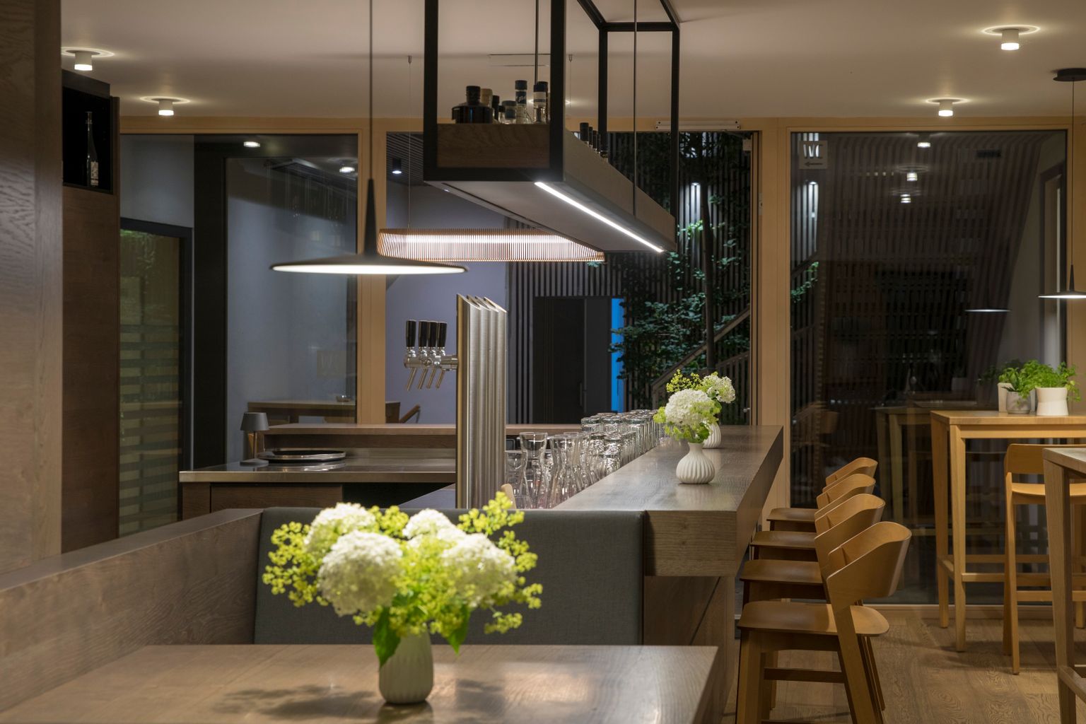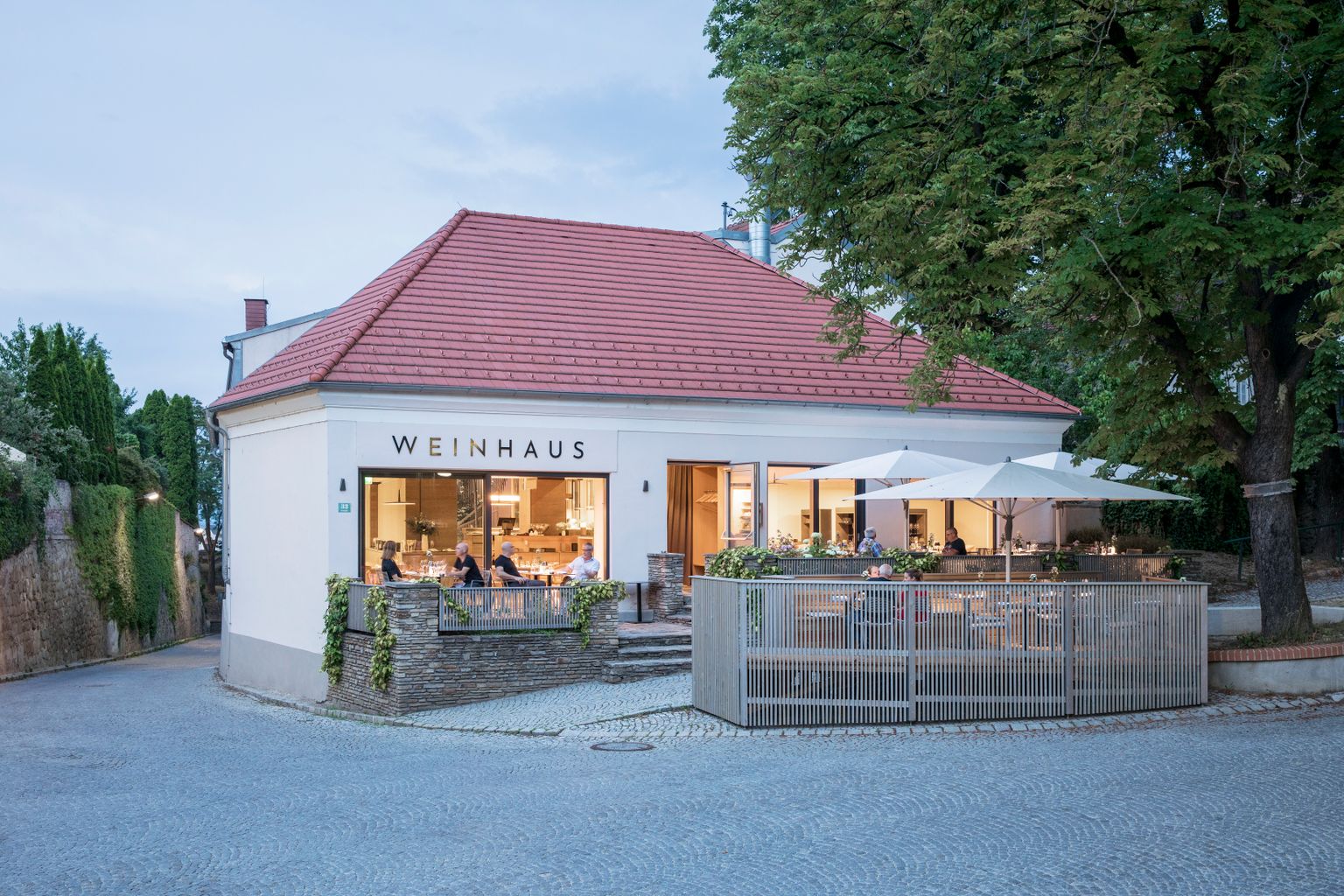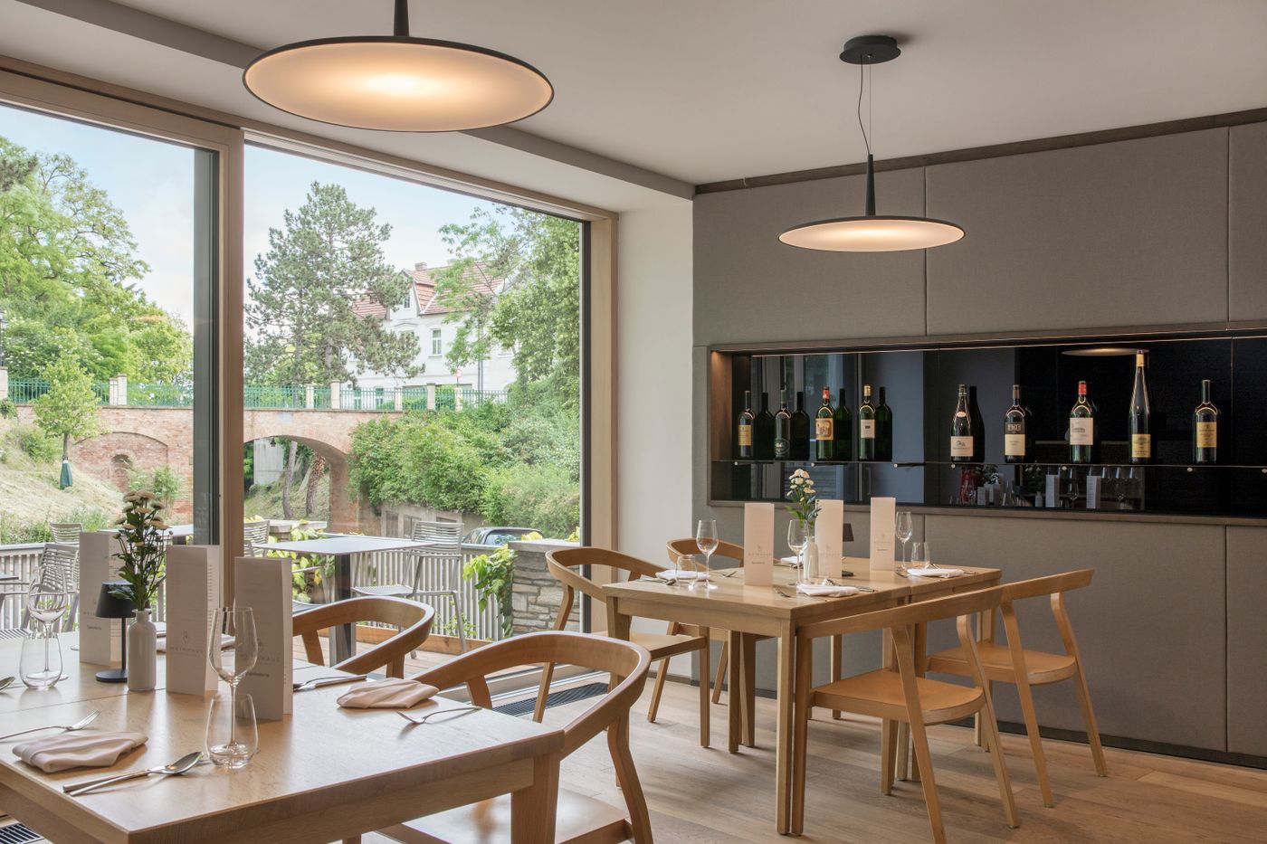 Das Weinhaus macht seinem Namen – mit einem Angebot aus größtenteils regionalen Qualitäten – alle Ehre. Mit einer internationalen Abrundung lassen sich wunderbare Begleiter zu den Gerichten der beiden Menüs finden. Rehsalami, Speck, Gemüseshot, Brot und Liptauer eröffnen das Menü. Etwas ungewöhnlich süßlich ist die Spargelcremesuppe, Sehr gut dagegen schmeckt die Pasta mit Sojabohnen, Kerbel und weißem Spargel. Bestens, weil gut abgestimmt, gelingt die Kalbskrone mit Ofenkartoffel und Pilzrahm, während uns der (sehr kleine) Maibockrücken mit Karfiol und Rhabarber weniger überzeugen kann. Die Schokoladendesserts sowie das hausgemachte Tonkabohneneis sind aber ein erfreulicher Abschluss.